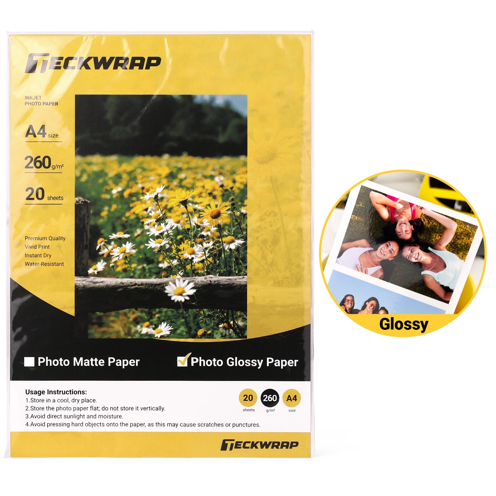 For those who want to capture every detail of their pictures with clarity and demand vibrant color, high resolution, and long-lasting print quality, TeckWrap Craft presents its Inkjet Printable Photo Paper, a premium choice designed to deliver professional results every time. Each sheet is crafted from heavyweight 260g material, providing a substantial, professional-grade feel that resists curling, smudging, or warping. It is available in two finish options, glossy and matte, to suit a wide range of applications. The glossy variant offers a high-shine finish that improves contrast and color saturation, while the matte option delivers a smooth, non-reflective surface.